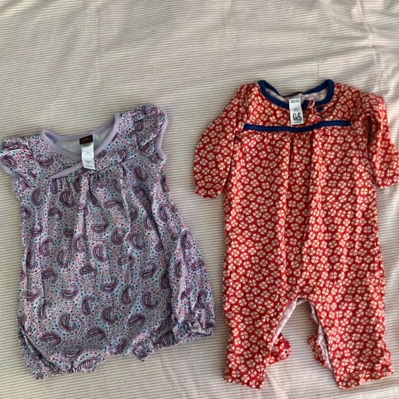 So sweet and in great condition. Two one piece outfits from Tea. So sweet! Both have snaps on the bottom