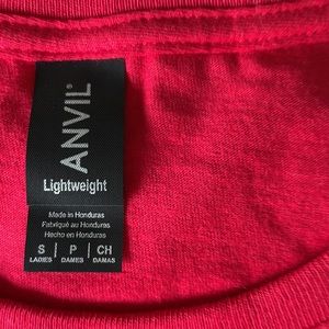To Tesla marketing shirts for the model three Tesla one is a gray T-shirt by American apparel and the other is a red. My other car is a reservation shirt.