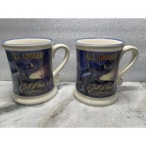 Two The Polar Express BELIEVE Warner Bros Embossed Logo Ceramic Coffee Cup Mug