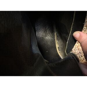 -has a chunk out of the leather on the top of the boot(see photos for details)