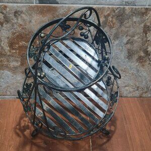 Two Tier Metal Fruit Basket Kitchen Storage Organizer 21" High Vines and Leaves