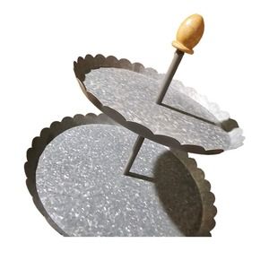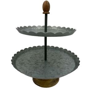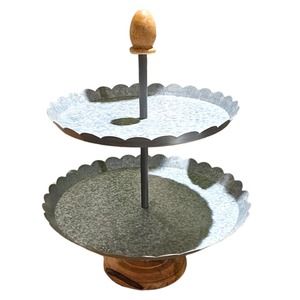 Two Tiered Aluminum & Wood Farmhouse Decor Tray