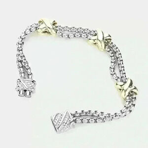 Two Tone 14K Gold Criss Cross Mesh Magnetic Closure Bracelet
