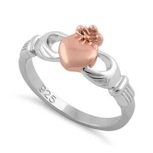Sterling Silver Two Tone Rose Gold Plated Claddagh Ring