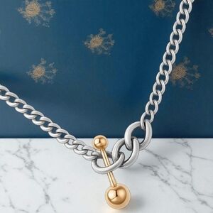 🆕️Two Tone 18K Gold Plated Stainless Steel Chain Necklace with Gold Ball Bar ✨