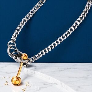 Elevate your style with this stunning Two Tone 18K Gold Plated Stainless Steel Link Chain Necklace! Featuring a unique gold ball bar design, this necklace combines elegance and modernity. Perfect for any occasion, it adds a touch of sophistication to your outfit.