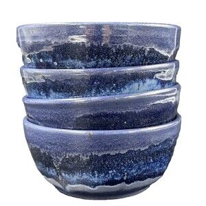 Two Tone Blue Marble Glazed Stoneware Pottery Cereal Soup Ice Cream Bowls 4