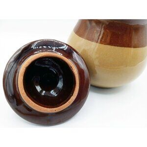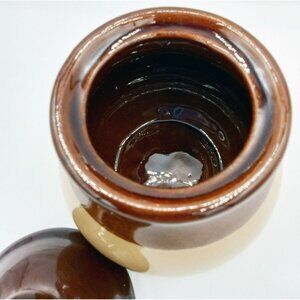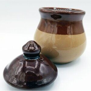 Two Tone Brown Ceramic Lidded Jar 3.25 Inches Tall Kitchen Storage Container