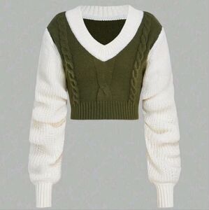 Two Tone Cable Knit Crop Sweater