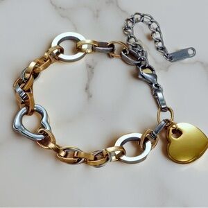 Two Tone Chain - Heart Charm Bracelets