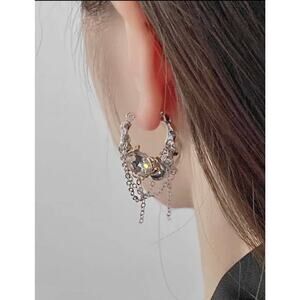 Silver tone Hoop Earrings with chain and a gold tone prong claw holding a shiny CZ Rhinestone. Please see photos for close up details & measurements. And...THANK YOU for stopping by BunnyBlvd!!! Brand New, without tags, please see photos for close ups & measurements. As always, if you have any questions, please don't hesitate to ask & THANKS SO MUCH for stopping by #BunnyBlvd !!!