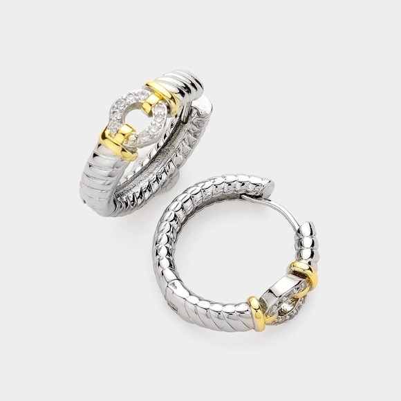 Two Tone Designer Hoop Huggies Ear Rings