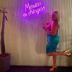 Two Tone Draped Ruched Side Satin Cami Dress. Only worn once. Basically new 🩷 💚