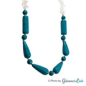 Two Tone Faux Turquoise Beads & Clear Quartz Chips Silver Tone Necklace