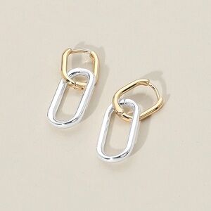 Modern earrings featuring interlinked open oval shapes in a sleek, minimal form.