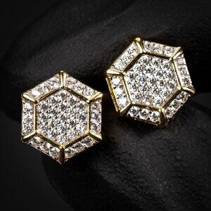 The size of these hexagon shape cluster earrings being 10.8mm will balance between a large and medium size stud making it perfect size for everyday wear. cz studs coupled with the sterling silver make for a fine, ultimately timeless piece of jewelry.