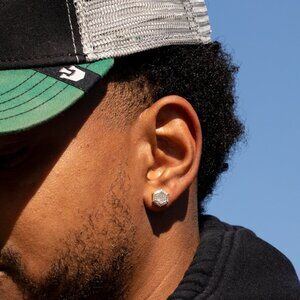 Two Tone Gold 925 Sterling Silver Men's Hip Hop Octagon Cz Stud Earrings