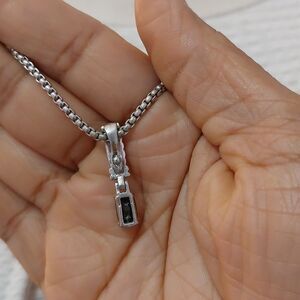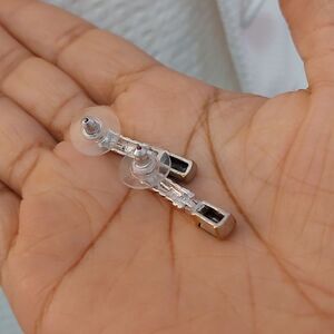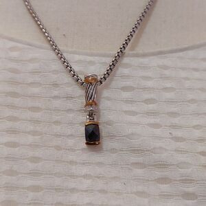 Two Tone Gold Silver Earrings and Necklace Set with Black Faux Tone Accent