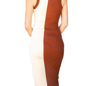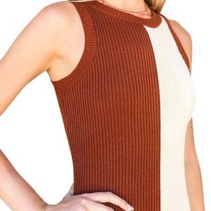 Brown-Rust and Cream Knit Midi with Crewneck and no sleeve