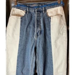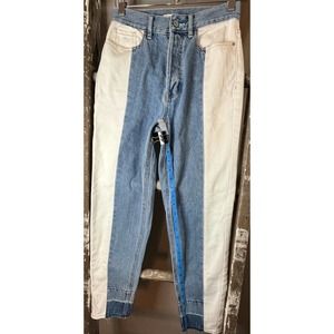Two Tone Mom Jeans High Waist Denim Color Block Jeans Size 25