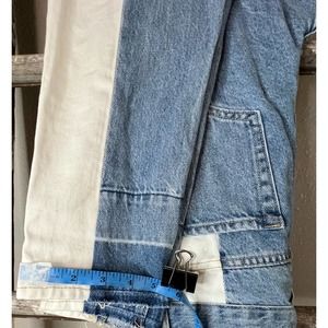 Keywords: two tone jeans, color block jeans, high waisted jeans, mom jeans, denim pants, vintage jeans, retro jeans, casual jeans, womens jeans, trendy jeans, unique jeans, contrast jeans