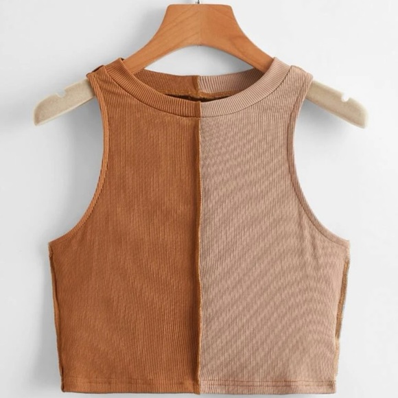 •Women’s Two Tone Ribbed Tank/Crop Top •Size: 4 •Color: Brown