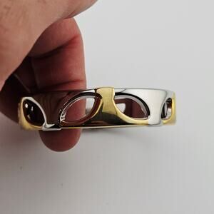 Two Tone Silver Gold Hinge Bangle Bracelet Leaf Cutout Stackable Everyday Classy