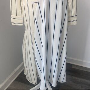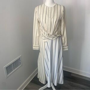 Two Tone White Cream Striped Long Sleeve Midi Dress