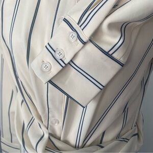 White and cream with navy blue stripes