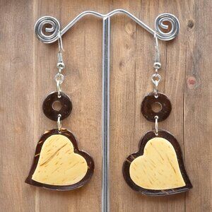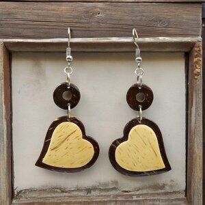 Two Tone Wood Heart Earrings