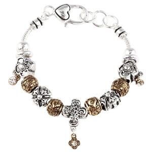 Two Toned Cross & Heart Charm Bracelet With Adjustable Lobster Clasp Closure