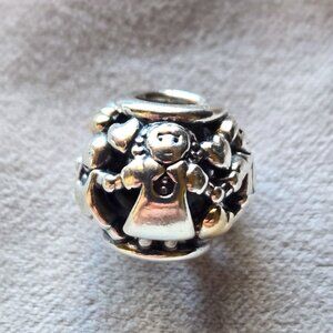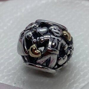Retired Authentic Two Toned "Family Forever" Pandora Charm in 925 Sterling Silver with 14K Gold Hearts. 791040.