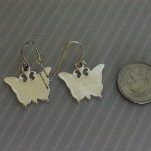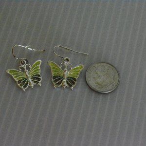 Two Toned Green Glitter Butterfly Drop Dangling Fashion Jewelry Pierced Earrings. Base color is silver tone. From smoke free home. Pictured beside dime for size reference. In great condition and very cute.