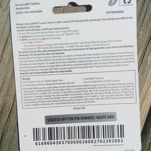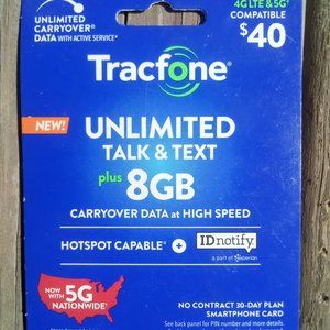 Two TracFone $40 cards. Unlimited talk and text plus 8GB. $60 as a pair.