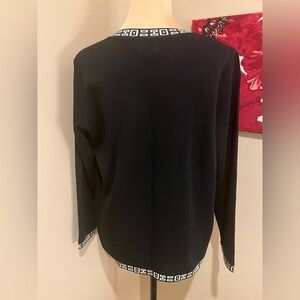 Two Two Boutique Black Cardigan,White Geometric Trim, Crystal buttons, size L