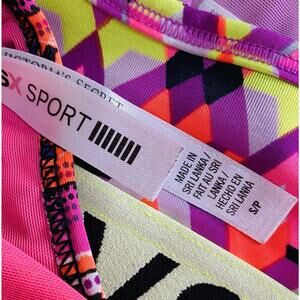 Two VSX Sport Victoria’s Secret Women's Sports Bras - Size Small. These are unpadded and wireless designed for medium support for athleisure wear. Brilliant colors in multicolor abstract prints. Wide elastic band and racerback - pullover style. Both in excellent pre-owned condition - gently worn - no flaws.