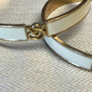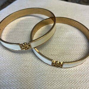 Two Victoria's Secret Bangle Bracelets. These are cream and gold with the Victoria's Secret monogram. These are from a smoke free, pet friendly environment.