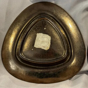 Two Vintage 60s 70s Mid Century MCM Ornate Metallic Copper Tone Ceramic Ashtray