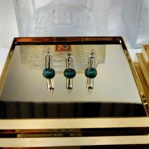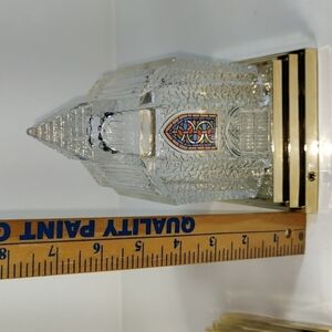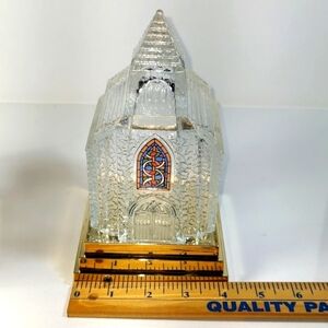 Two Vintage Avon Light Up Clear Pressed Art Glass of Church with Gold Base