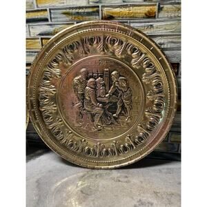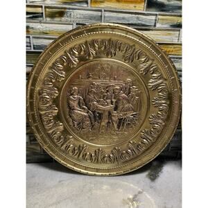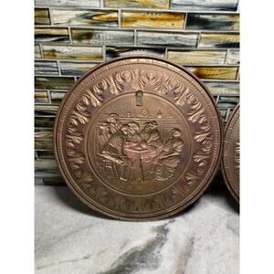 Two Vintage Brass Embossed Decorative Wall Hanging Plate Plates Made In England