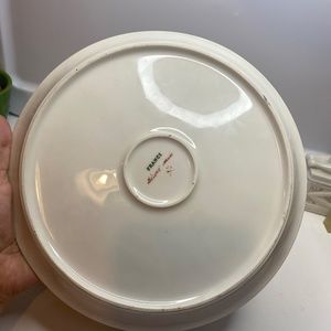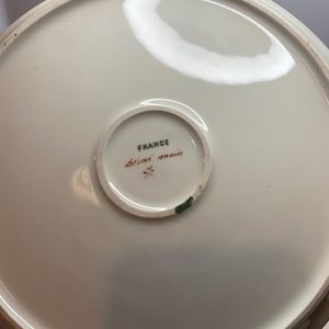Two Vintage France Plates Hand Painted Floral Green & Gold Accents About 8” Wide