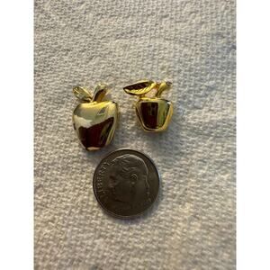 Two Goldtone Apple Pins, larger one is signed Manpower and has tiny amount of gold missing. The large pin is signed Manpower, the small apple pin is not marked,