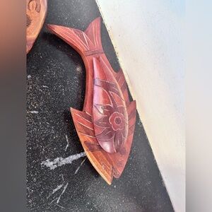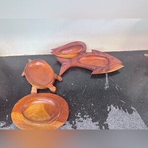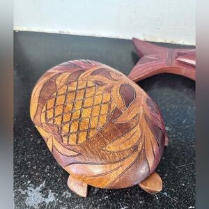 Two Vintage Hand Carved Wooden Serving Tray Bowl w/Lid