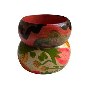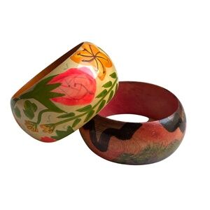 Two Vintage Hand Painted Wood Bangle Bracelets