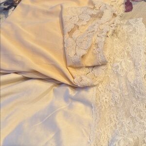These elegant cream ivory color half slips both feature a delicate lace trim. Really beautiful vintage 60s/70s lingerie.