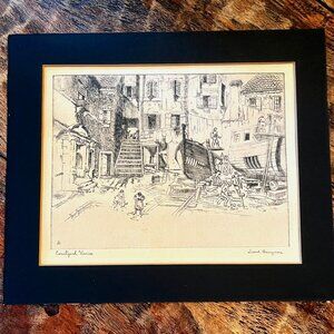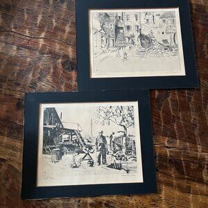 Two Vintage Lionel Barrymore Etching Prints Point Mugu & Courtyard Venice