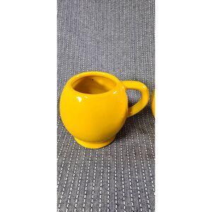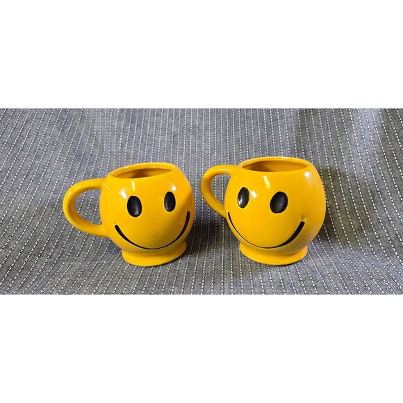 Bring a cheerful touch to your morning routine with this vintage retro yellow smiley face mug by McCoy Pottery. This collectible piece features the classic bright yellow glaze and iconic happy face design, perfect for adding a nostalgic pop to any kitchen or display shelf. I personally wouldn't use these for beverages but would make great decor or planters.