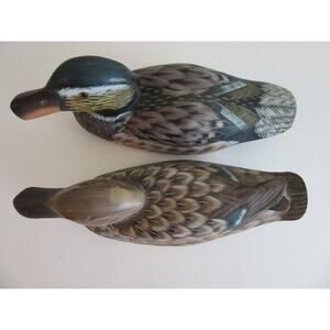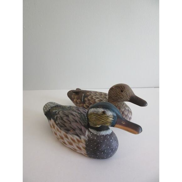Vintage Hand painted Signed by Two Different Artists Male & Female Mallard Duck Decoys