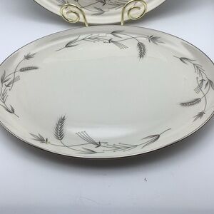 Two Vintage 1960s Taylor Smith & Taylor Co. American fine china Taylorton translucent Silver Wheat pattern silver rimmed platters. Designed by John Gilke. Oven, craze and detergent proof.