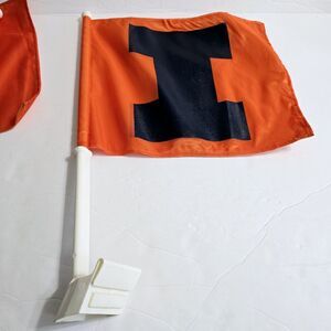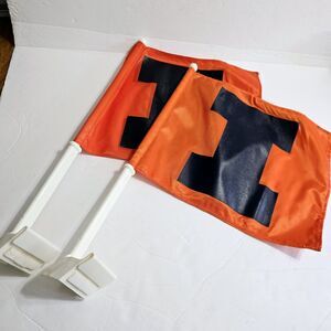 Two Vintage University of Illinois ILLINI Block I Vehicle Tailgate Window Flag